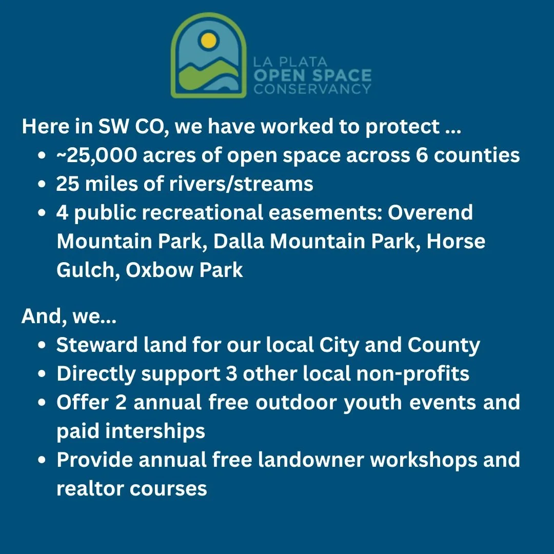 We work with landowners, donors, and community partners to permanently protect agricultural lands, wildlife habitats, open spaces, and historically significant properties throughout La Plata County, Colorado.